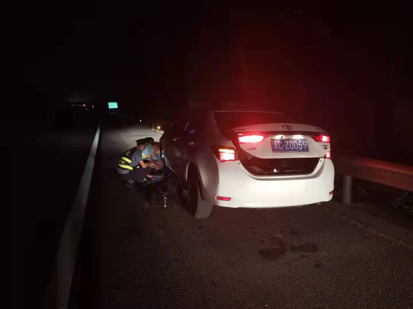当天晚间,乐亭大队执法人员在巡查沿海高速天津方向时,发现一辆冀C牌照的白色轿车停靠在应急车道内,车辆后备箱呈开启状态,有一对夫妇正在车辆附近焦虑的徘徊,看样子十分的着急。执法人员见状后立即停车,经询问得知,夫妻二人均在秦皇岛工作想要于中秋节前夜赶往曹妃甸老家探亲,没想到自家轿车左前胎突发了爆胎,而且从未经历过这样的事情,对更换备胎没有任何经验。执法人员了解清楚情况后,一边安抚当事人的焦虑情绪,一边帮助他们使用套筒扳手卸下了破损车胎的轮毂螺母,随后又帮其支起了机械千斤顶并对爆破轮胎进行更换。大家分工合作,经过10余分钟的不懈努力,终于将轮胎更换完毕,使车辆恢复了行驶能力。当事人对执法人员的热心救助无比感激,并想拿车上探亲用的水果、月饼赠予执法人员以表谢意,被执法人员婉言相拒。