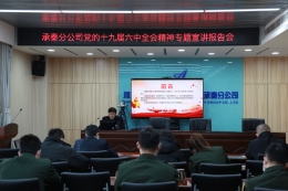 12月16日上午,按照集团公司党委、分公司党委关于做好党的十九届六中全会精神专题宣讲工作的有关要求,承秦分公司党委委员、副总经理马印怀同志向分管各单位、部室人员进行专题宣讲,会议以视频会议形式召开,设主会...[详细]