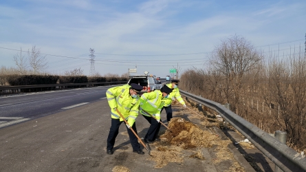 2月8日,乐亭大队执法人员赵虎、郜伟、王红江等在沿海高速秦皇岛方向k69+600处清理路面掉落的草捆。 在2月8日早晨进行的道路巡查过程中,发现沿海高速秦皇岛方向k69+600处的车辆缓冲区内有大量掉落的草捆,对行车安...[详细]