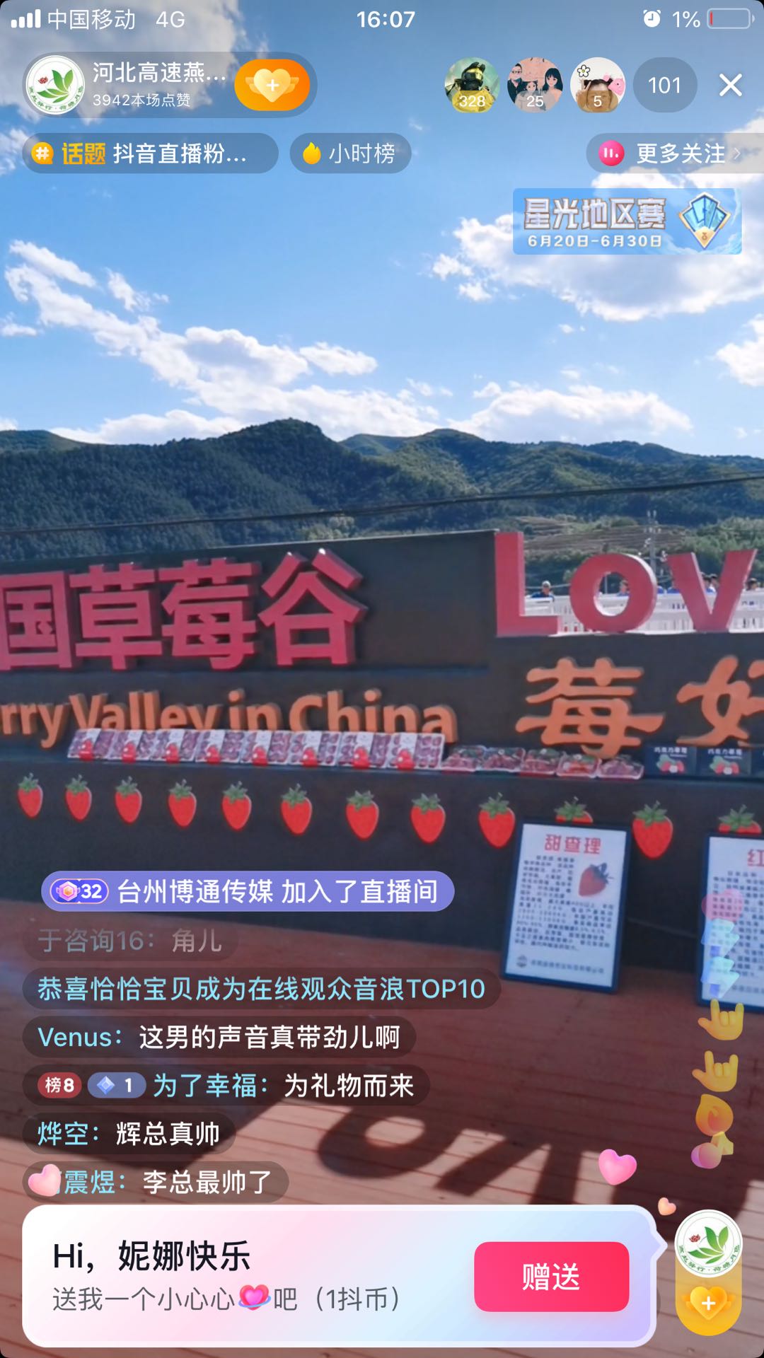 “美好旅途,伴随你我”又到了一年一度的旅游季,6月17日下午,燕赵驿行公司承德分公司“互联网+”农产品抖音直播暨“6.16荷花节”推广活动成功在茅荆坝服务区亮相。据统计,短短60分钟的抖音直播共吸引上千人观看,当场获得4.2万点赞数,抖音关注量持续升温。