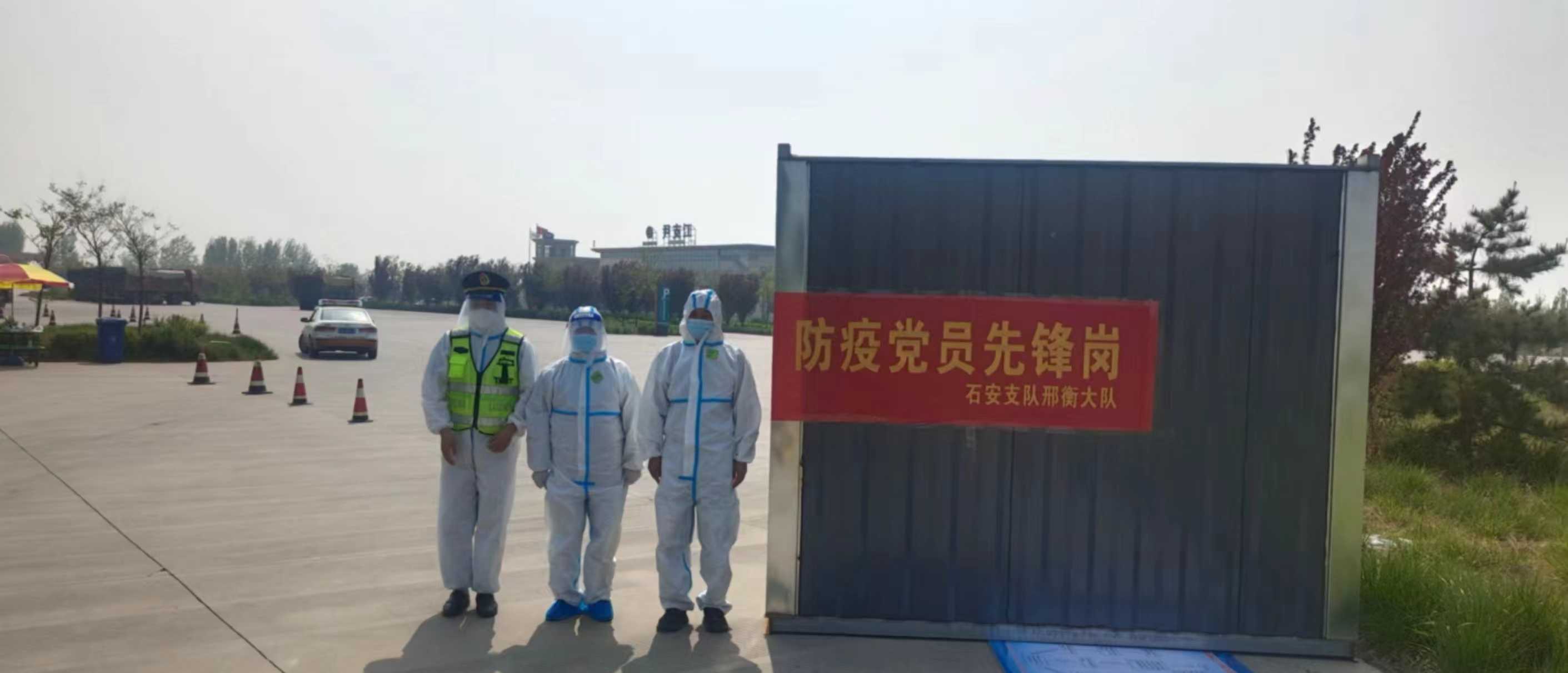 做好服务区联防联控——为积极做好高速公路服务区疫情防控工作,大队设立防疫党员先锋岗,党员积极投身到尹支江、巨鹿服务区等疫情防控工作中,认真配合公安、交通、卫健等部门,维护驶入车辆秩序,查验行程码、健康码和核酸检测结果,有序开展联防联控工作。