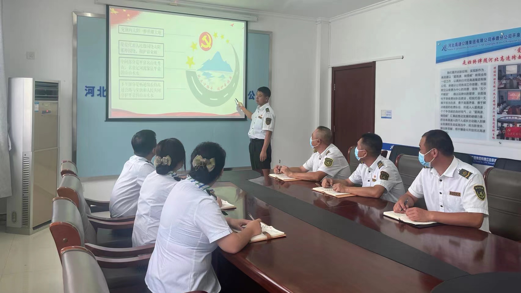 8月24日,平泉收费站党支部召开党员大会,讨论部署下阶段党建重点工作,并研究制定《习近平经济思想学习纲要》学习计划。