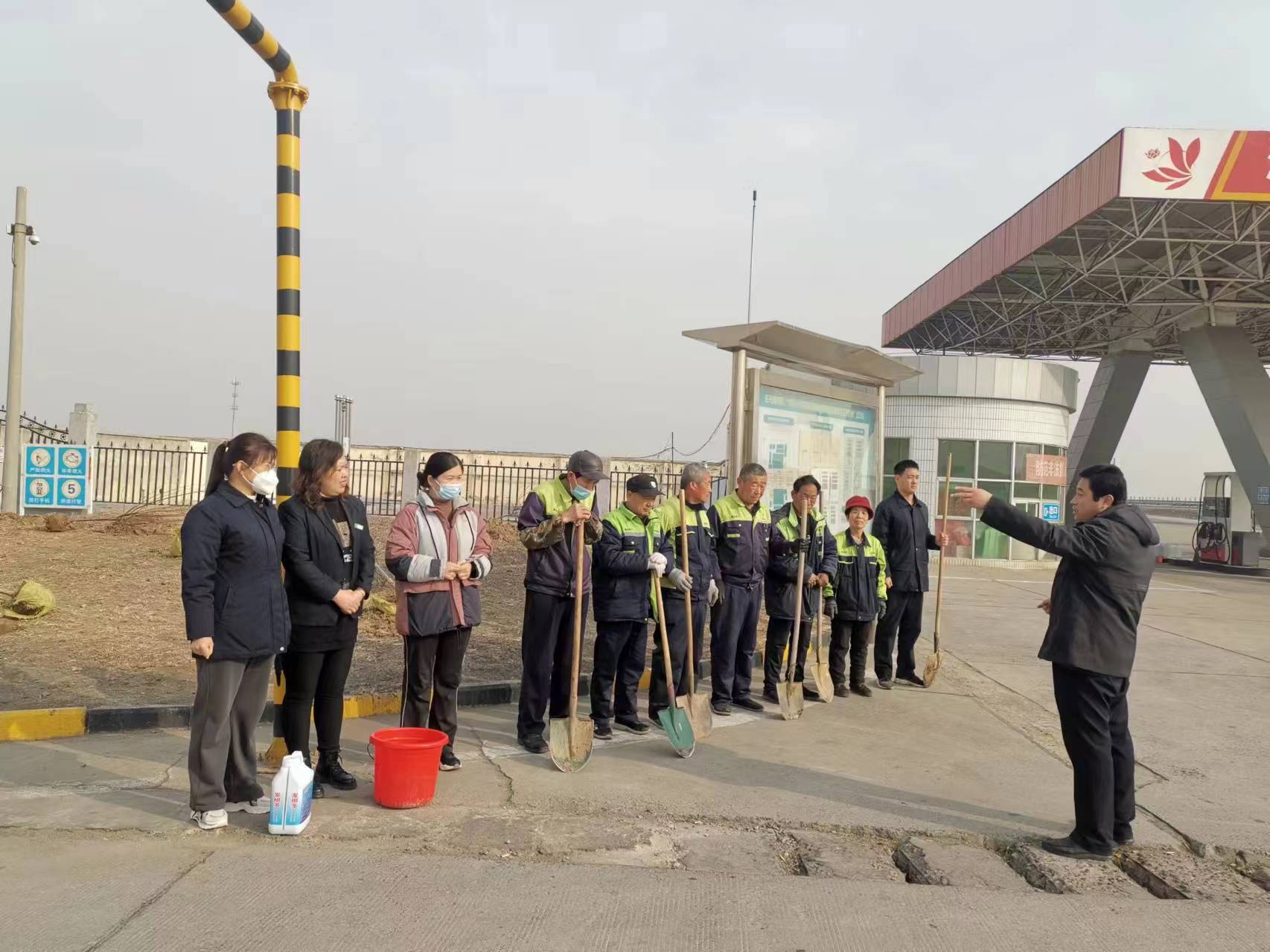 破土碎石、挥锹铲土、扶苗填坑、提水浇灌,各服务区一派热火朝天的繁忙景象,广大员工们热情洋溢,有的负责挖坑,有的负责搬运树苗,有的负责培土浇水,共同为服务区增添了一抹抹生机勃勃的绿色。为保证树苗的成活率,每个人都严格按规范操作,一丝不苟做好各道工序,确保植树各环节衔接有序。在大家齐心协力下,一棵棵刺柏、油松被悉心种下,新种的腊梅迎风挺立,馨香扑鼻,焕发一片盎然生机。植树结束后,大家借此机会对此前已有的桃树、杏树、海棠树等进行了修剪、施肥、培土、浇灌,对服务区内的幼小弱病苗木进行新土培植、喷洒农药和返青浇灌,呵护小树成长,助力成材添绿。
