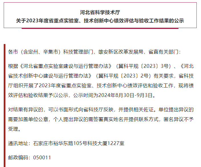 8月30日,河北省科学技术厅公布了2023年度省重点实验室、技术创新中心绩效评估与验收工作结果,河北省高速公路数字化技术与装备重点实验室顺利通过省科技厅专家组评估,标志着实验室正式迈入新的发展征程。