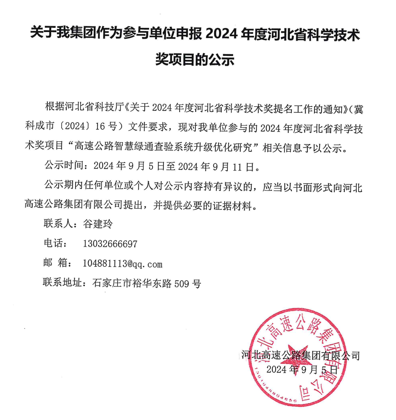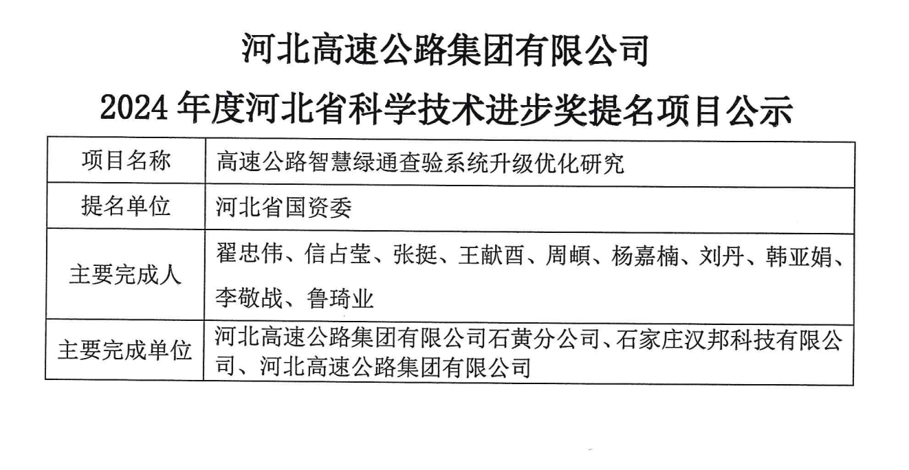 关于我集团作为参与单位申报2024年度河北省科学技术奖项目的公示