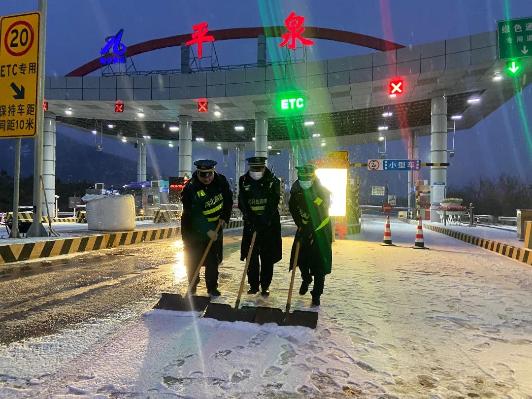 近日,平泉地区迎来降雪天气。为保障车辆安全通行,承德分公司平泉收费站立即开展除雪保畅工作。全体在站职工坚持随下随除的原则,对收费广场、车道及站口周边区域进行积雪清理。大家不畏严寒,利用除雪铲、扫帚等工具齐心协力除雪破冰。同时,加强站口疏导,指挥车辆有序排队,耐心提醒司乘减速慢行,保持安全车距,避免车道拥堵和事故发生。在做好除雪保畅工作的基础上,平泉收费站还准备了充足的热水、泡面等热饮,以及常用药品、修车工具等物资,积极开展延伸服务,在岗职工密切关注天气变化和路况信息,为司乘及时提供路况咨询。