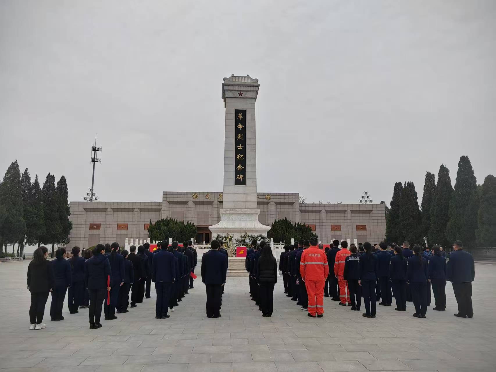 上午十时整,全体党员在纪念碑前整齐列队,向纪念碑敬献花圈,表达对革命先烈的深切缅怀与崇高敬意。纪念碑前,全体党员高举右拳,重温入党誓词,一句句铿锵有力的誓言,表达了不负革命先辈遗志、接续奋斗的坚定信念。